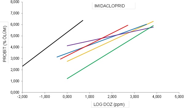 - Imidacloprid uygulanan Bemisia tabaci popülasyonlarının logaritmik doz probit doğruları